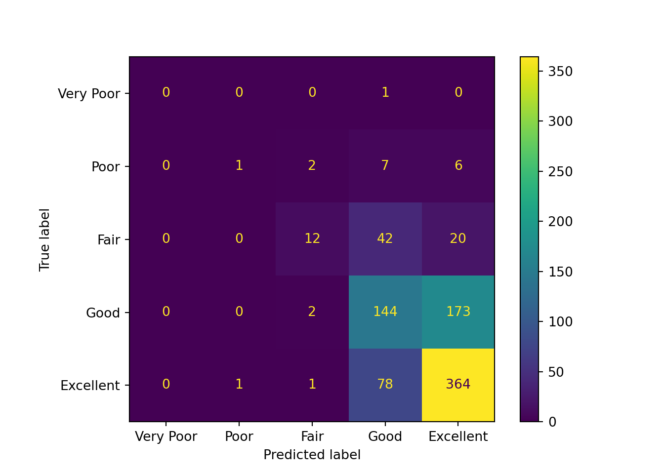 target_names=["Very Poor", "Poor", "Fair", "Good", "Excellent"],